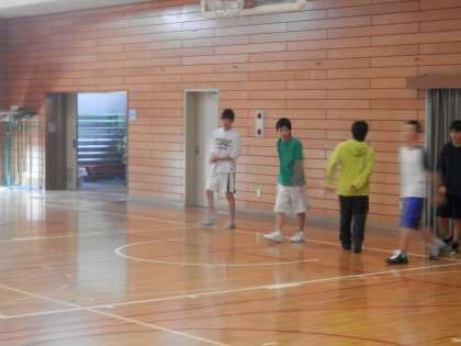 体育館では男子バスケットボール部です。