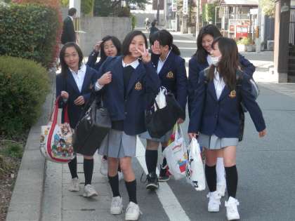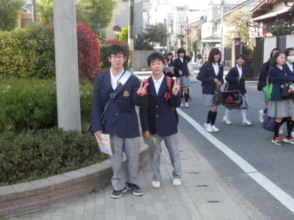 今日も花山中生は元気に登校しています。