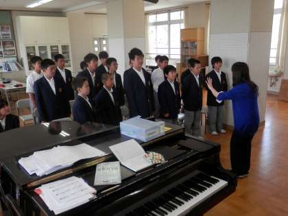 1年生が音楽で、ハーモニーをつくる練習とできた時の喜びを感じる学習をしていました。