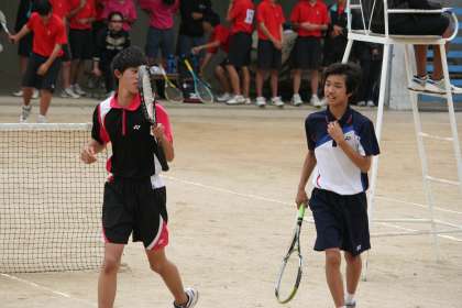 男子テニス部は、加茂川中学校で団体戦です。
