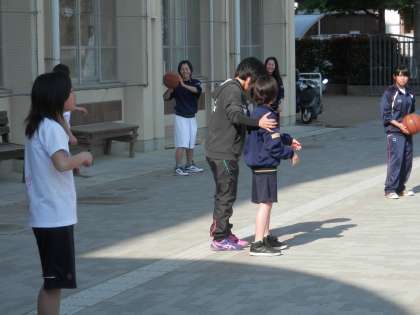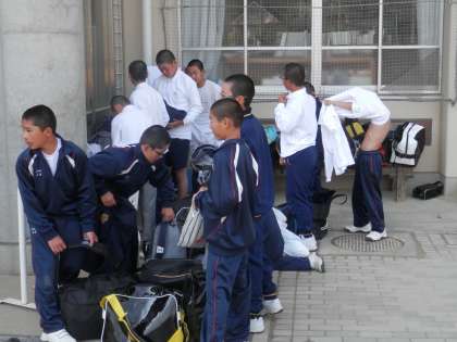 校門へと向かうとき、野球部は早くも練習を終えて着替えている人たちがいました。女子バスケットボール部は1・2年生だけの朝練習です。