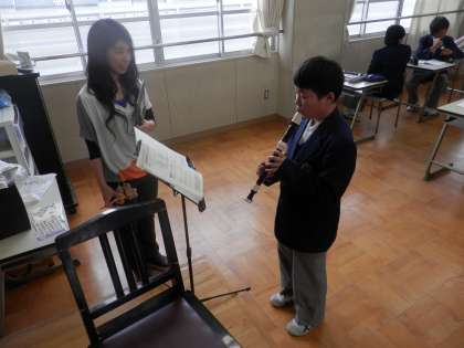 音楽では、アルトリコーダーのテストをしていました。