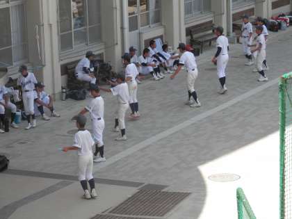 野球部は、昨日は校外に出ていましたが、今日はうちに立命館宇治中学校と上京中学校を迎えての練習試合です。