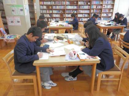 男子の体育はバレーボール、国語の時間には図書館での学習、女子の体育はダンスのDVD視聴でした。