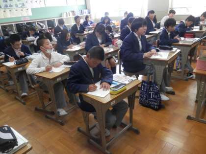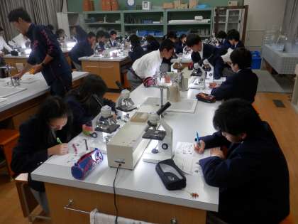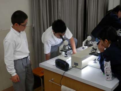 1年からは理科の顕微鏡による気孔の観察の様子と社会科の時間の様子です。