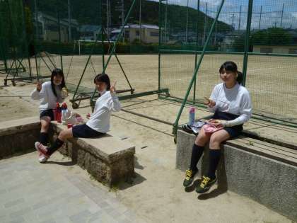 2年生ランチタイム〜今日はグランドで5〜