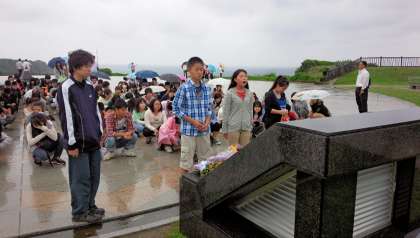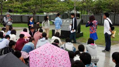 沖縄戦最後の激戦地の摩文仁に建設された平和祈念公園にて平和祈念セレモニーを行いました。戦争の犠牲となられた方々の鎮魂と反戦への想いをこめて黙とう。