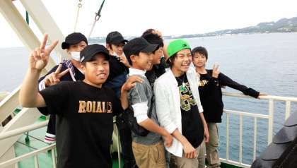 伊江島への船内の様子です。みんな,まだまだ元気いっぱいのようです。