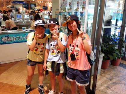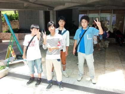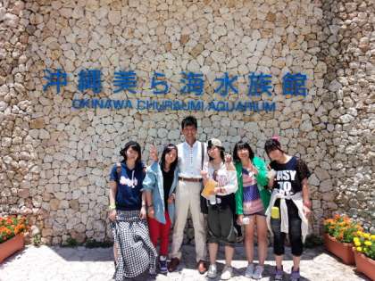 美ら海水族館での活動もそろそろ終わりで,集合場所へ生徒が集まってきています。