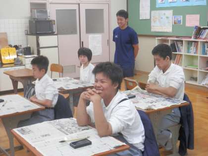 育成学級の生徒は書道に取り組んでいました。