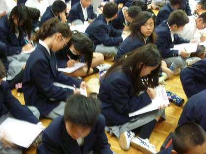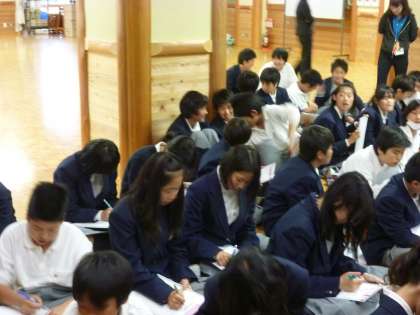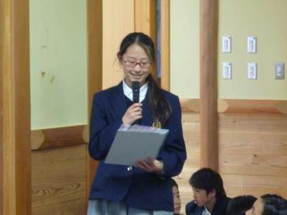 1年生の生徒自らの努力体験(がんばってやりとげたこと)を語ってもらいました。1人の生徒が勇気を出して,みんなの前で堂々と話してくれました。すばらしい語りでした。今後もこのような活動が継続されますので2人3人4人と多くの人が人前で語れるようにしていきましょう