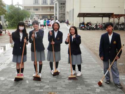 部活動をしている子や登校してきた子たちと言葉を交わします。