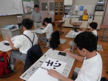 6組へ行ったとき、たまたま今日も国語で、しかも書道の時間でした。
