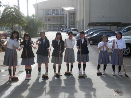 朝が早いので、掃除をしてくれている人の中に上着を着たままの人もいます。