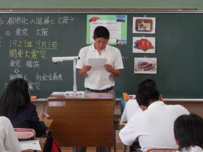 英語の時間には、修学旅行にちなんだスピーチの披露です。