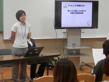 生徒の現状をDVDで見て頂いたのち、2年のメイン行事である「チャレンジ体験」について説明がありました。