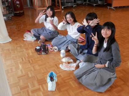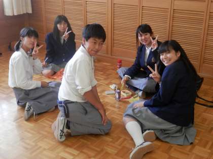 吹奏楽部の人たちは、丁度昼食時間です。