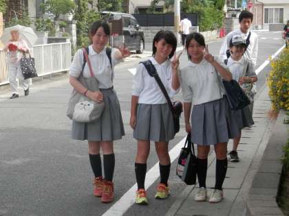 生徒たちは、蒸し暑さなんかに負けず、元気に登校してきます。