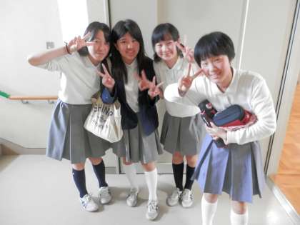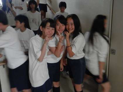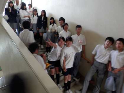 2年生、この時間は体育と家庭科への移動で、廊下が大変な混雑を見せていました。