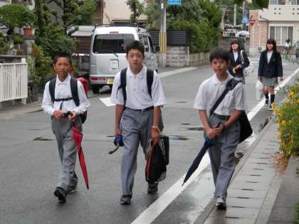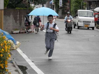 梅雨らしい小雨が降る朝です。傘をささずに登校する生徒の方が多かったです。