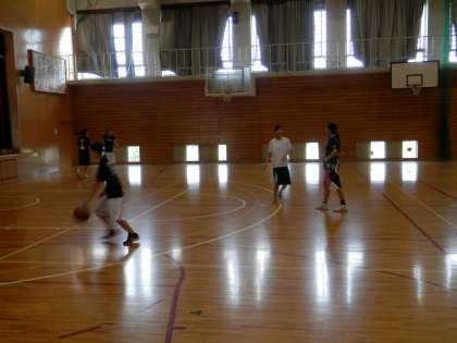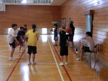 テニスコートから帰ってくると、体育館で練習しているのは女子バスケットボール部に代わっていました。