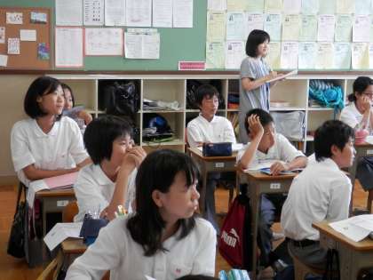 1・2時間目、鏡山小学校の英語を担当しておられる先生が中学校英語の授業の参観に来られました。