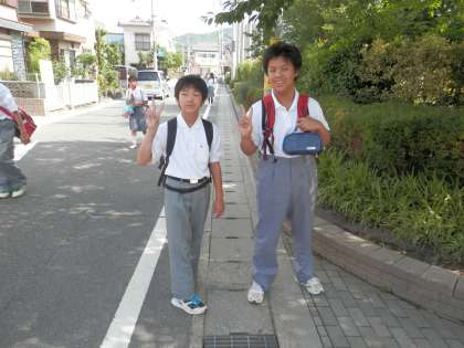そんな中でも、花山中の生徒諸君は元気に登校しています。