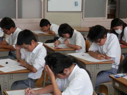 どの学年、どのクラスの生徒も真剣にテスト問題に向き合っていました。