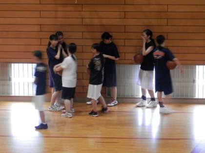 女バスは、フォーメーションの確認をしているようでした。