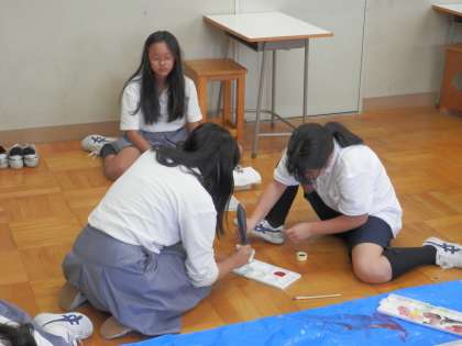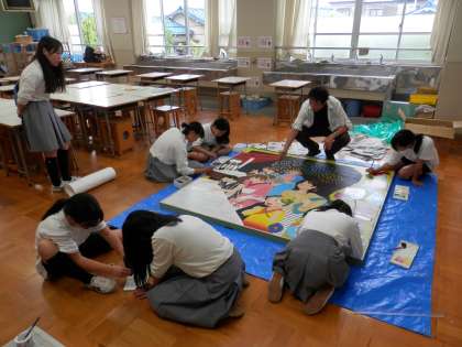 美術部の皆さんが、地域の方の依頼で大看板の制作に取り組んでくれています。