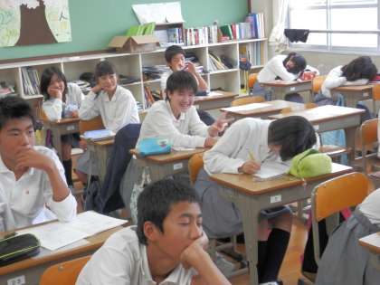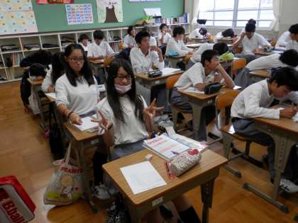 2年生の授業中、学習課題が出されていて、それのできてしまった人が笑顔を向けてきました。「もう、できたんか!?」声を出さず、唇だけ動かしてそう尋ねると、しっかりと首を縦に振る生徒たち。