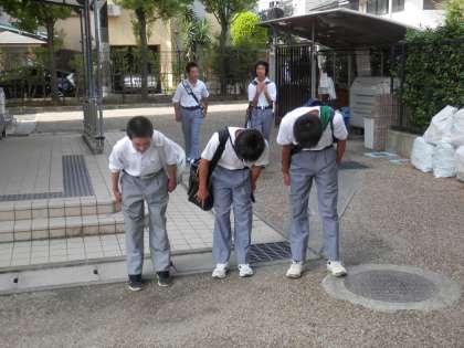 とても暑い朝です。木陰が恋しく風がほしいです。登校してくる生徒の中には、額や首筋に汗を流している子がいます。