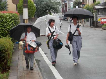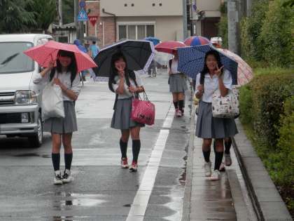 梅雨時の台風の影響で、登校時間帯は強い雨と蒸し暑さが重なりました。