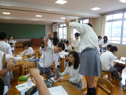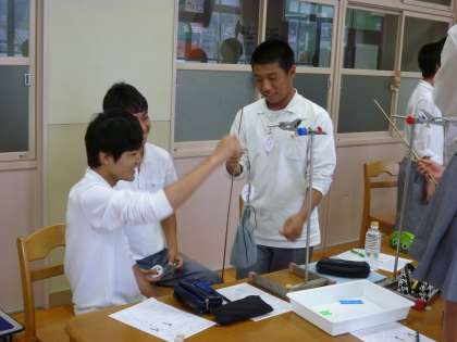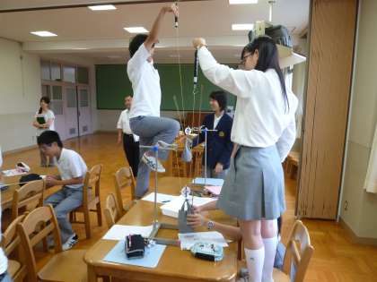 動滑車を使用すると,力は半分で済むが物体を動かす距離は2倍必要であることから,仕事量は変わらないこと(仕事の原理)を,実験から学びました。