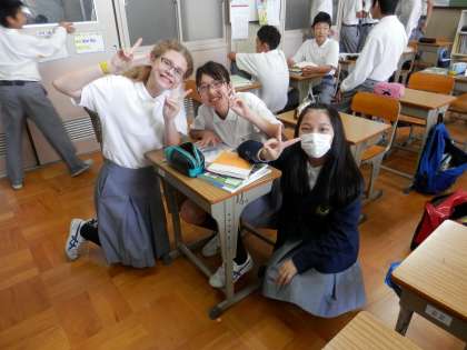 廊下で、そして教室で、時には先生も一緒になって、みんな楽しく過ごしています。