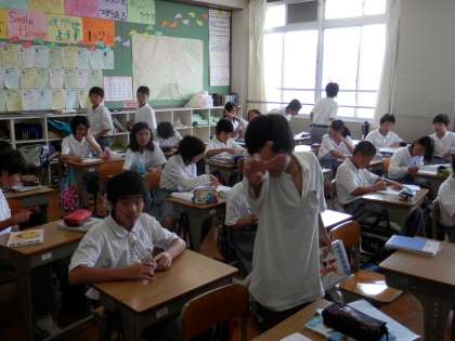 1クラスだけ、ほとんどの生徒が教室から出ないで次の授業の準備をしていました。