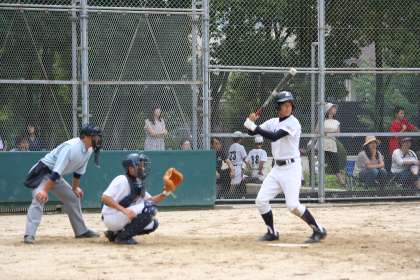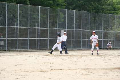 そこでバッターボックスには小端君。鋭い当たりがレフトを襲いました。これがレフトのエラーを誘い、何と小端君がダイヤモンドを1周して帰ってきました。