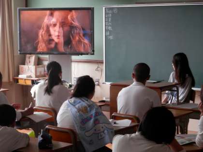 3年の英語では、英語のDVD鑑賞です。最近は日本語吹き替え版で映画を見る人が増えているようですが、こうして英語版で見るのもよいものです。