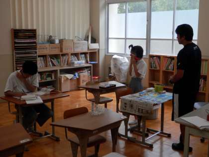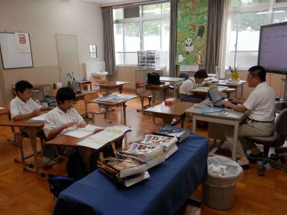 3年生は、交流学級に入って球技大会に出ていますので、教室では1・2年生だけが学習していました。