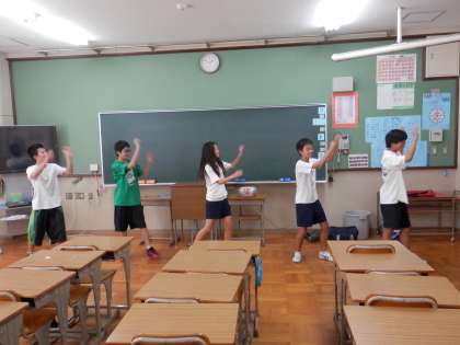 あさっての学年集会で披露するのか、評議員の人たちがダンスの練習に精を出していました。