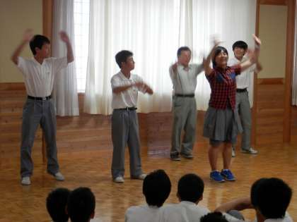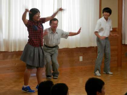 大賀先生のダンスに、次々と先生や生徒が引っ張り出されます。