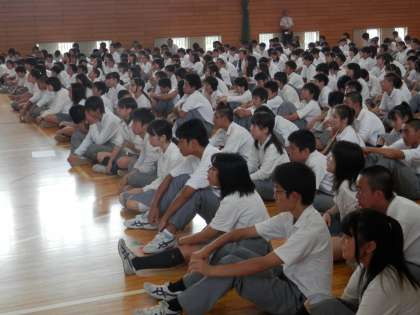 これを見て頂いたら、体育館の全校集会の雰囲気を分かっていただけるのではないかと思います。