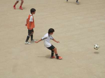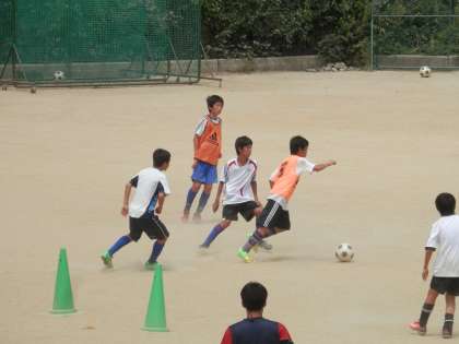 ものすごく暑いグランドではサッカー部が熱心にボールを追いかけています。