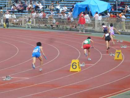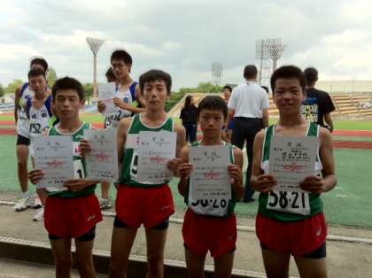 男子低学年リレー4人×100mに出場した森・勝野・綿井・谷口の4選手は,見事なチームワークをみせ,予選1位で通過。決勝も3位となり,近畿大会出場を決めました。おめでとう。