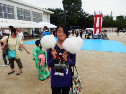 妹の分とと二つの綿菓子をもって、お姉ちゃんは大変です。