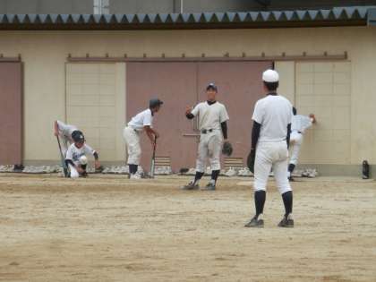 グランドでは、今日も野球部が熱心に練習をしています。