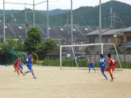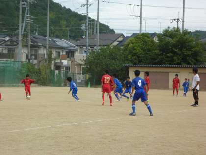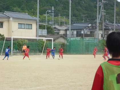 サッカー部が午前中,花山中のグランドで衣笠中学校と練習試合をおこなっていました。試合は押し気味にすすめているようですが,なかなか点が入らないようです。決定力が今後の課題でしょうか。