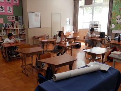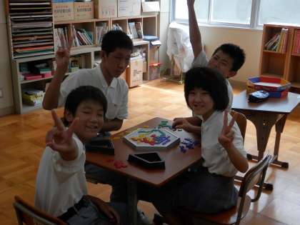 3年生は国語の授業、1・2年生はパズルを使ったゲーム感覚の学習、1年男子の一人は交流体育です。