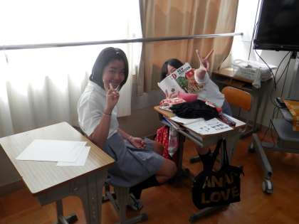 英語の時間にテストの順番を待つ人たちと、その後休み時間になって3階に上がった際に、理科室で後片付けを終えた人たちのショットです。