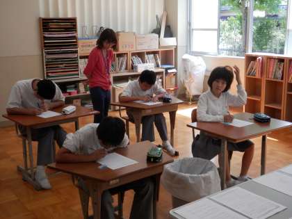 1・2年生の教室には、国語の楠本先生が来ておられましたが英語の学習です。